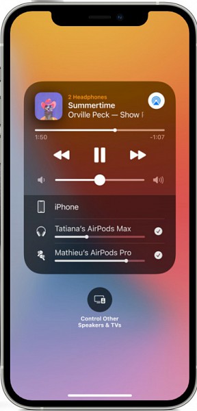 Az iPhone-odról, iPadedről, iPod touchodról vagy Apple TV-dről egyszerűen streamelheted ugyanazt a hangot két AirPodsra is