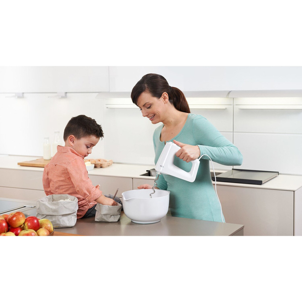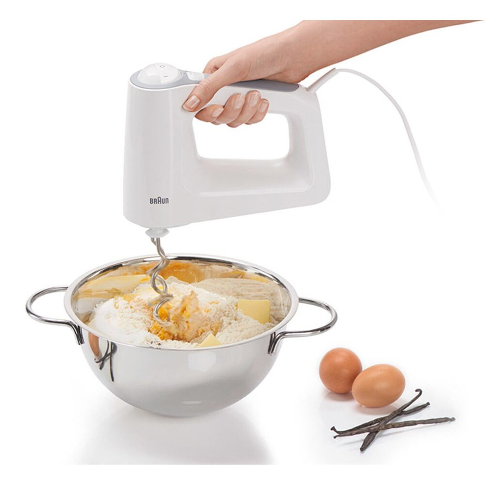 A habverők és a tésztakampók kényelmesen válthatók a nagy gomb egyetlen megnyomásával.