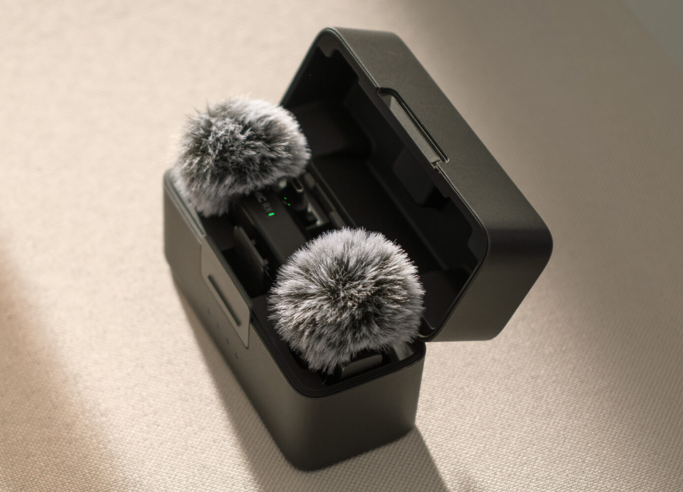 A kompakt DJI Mic Mini innovatív kialakításának köszönhetően könnyen tárolható. A töltőtáskában két adó-, egy vevőkészülék, mobiltelefon-adapterek és -szélfogók is rendben tárolhatók. Az adóegységeken lévő szélfogókat a táskában való tárolás során nem kell eltávolítani. A teljes szett kényelmesen használható és könnyen tárolható.