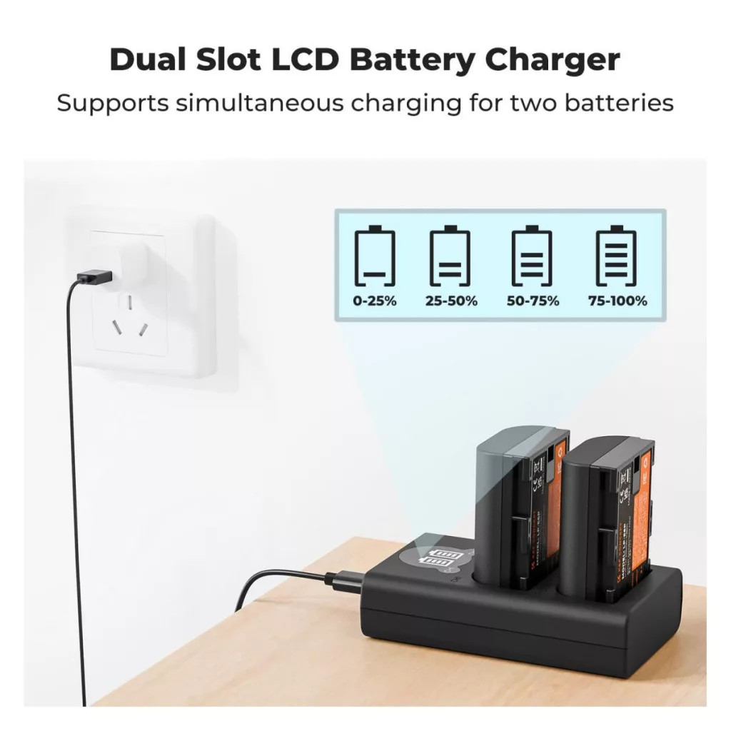 K&F Concept dupla töltő és 2db LP-E6NH akkumulátor