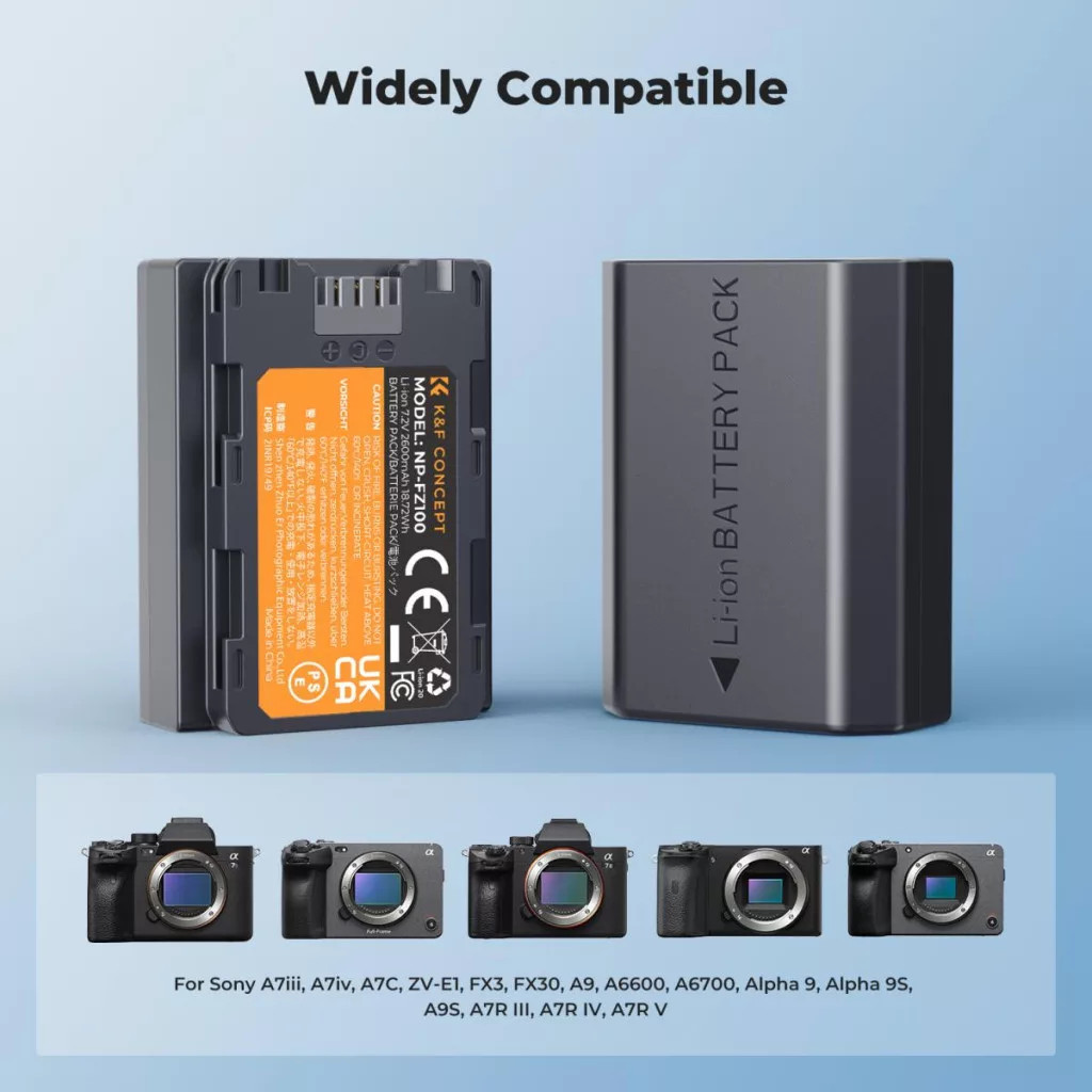K&F Concept dupla töltő és 2db FZ100 akkumulátor (2600mAh)