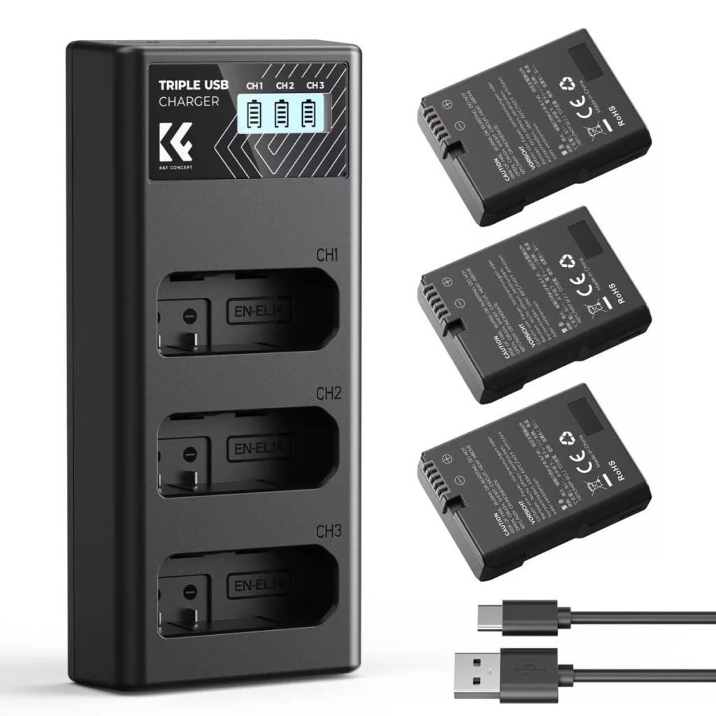 K&F Concept tripla töltő és 3db EN-EL14 akkumulátor