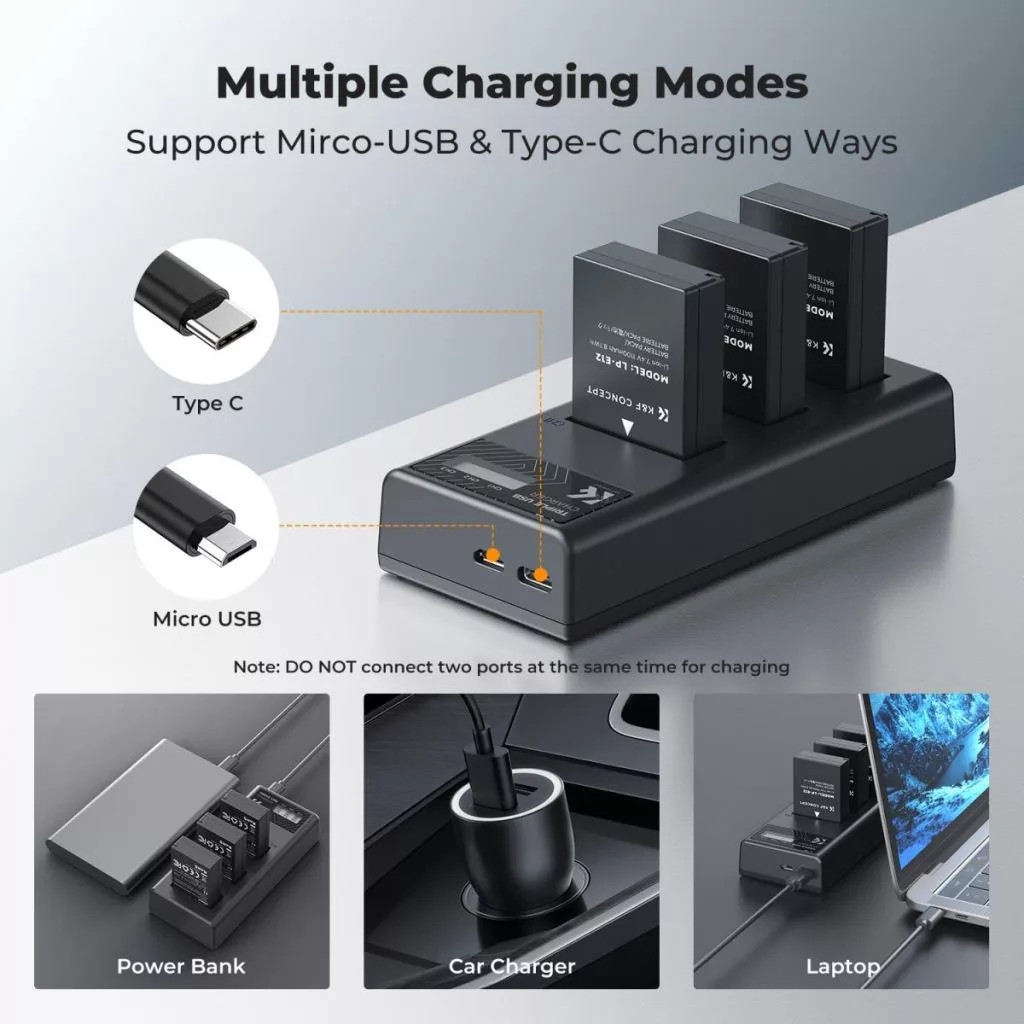 K&F Concept tripla töltő és 3db LP-E12 akkumulátor