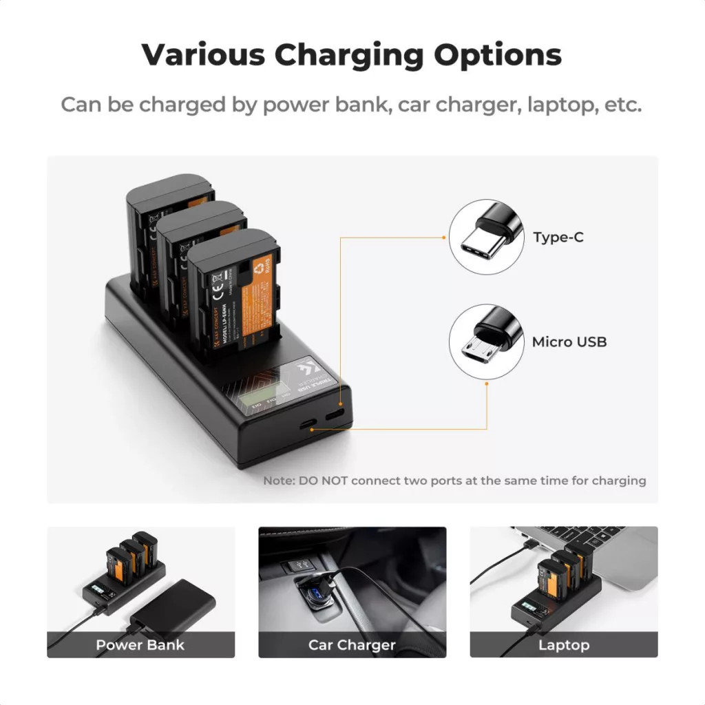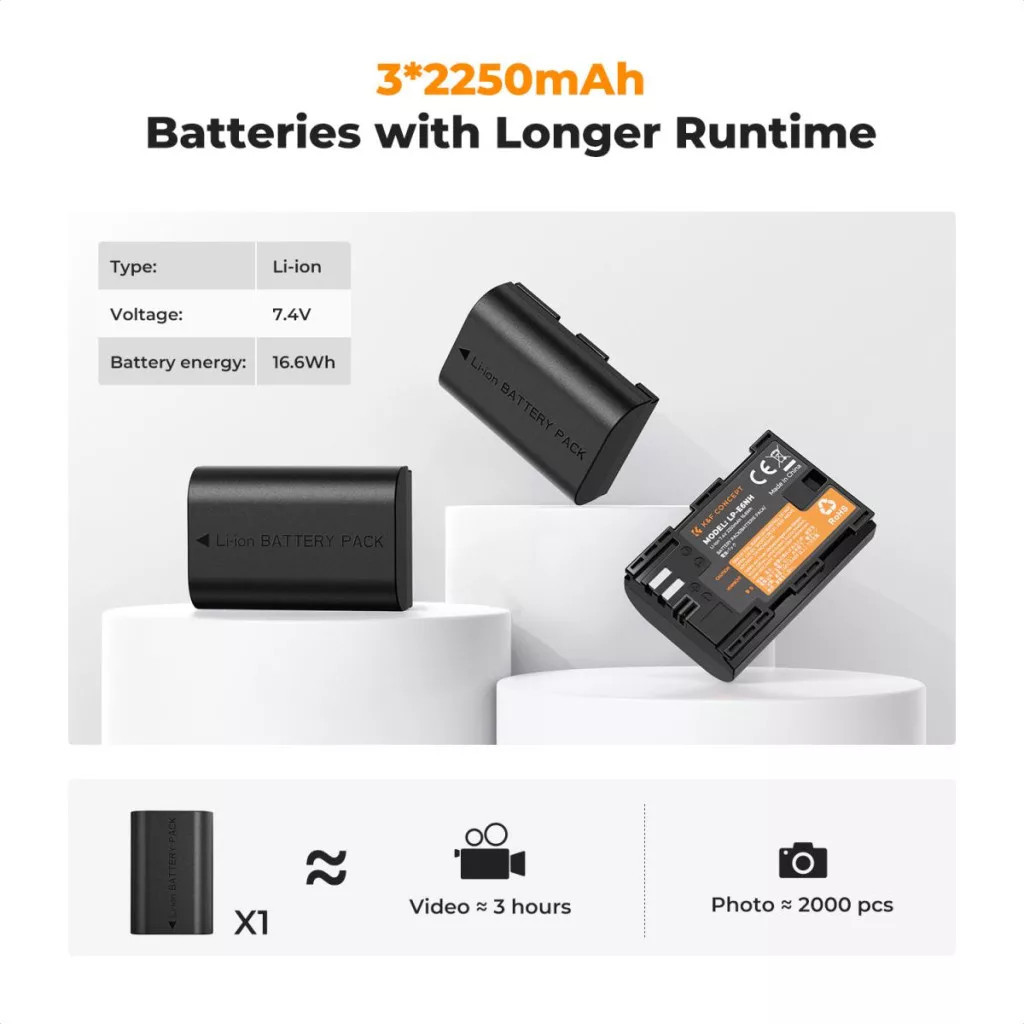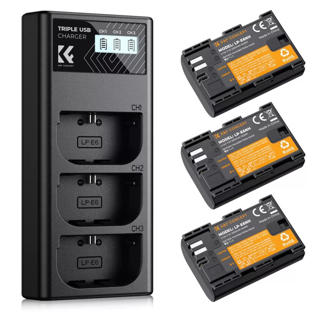 K&F Concept tripla töltő és 3db LP-E6NH akkumulátor