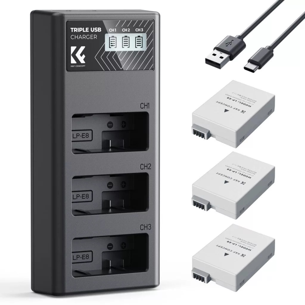 K&F Concept tripla töltő és 3db LP-E8 akkumulátor