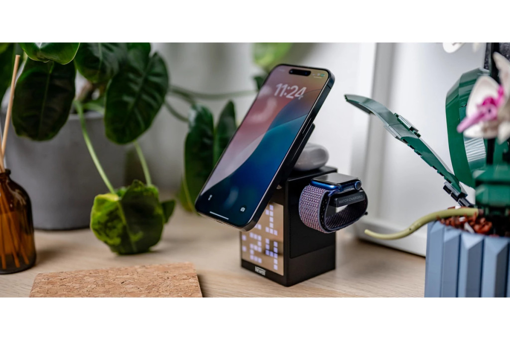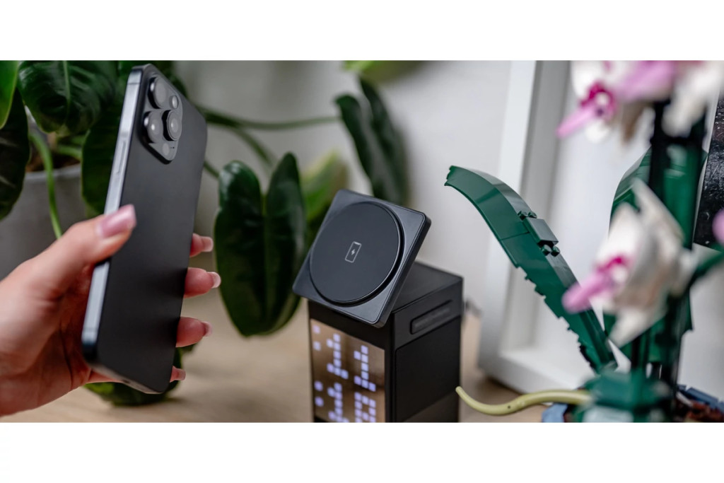 A dönthető MagSafe tartóval beállíthatod a neked legkényelmesebb szöget. Ráadásul egyetlen kattintással előbújik az óratöltő modul, így egyszerűen és gyorsan rárakhatod az Apple Watch-odat is.
