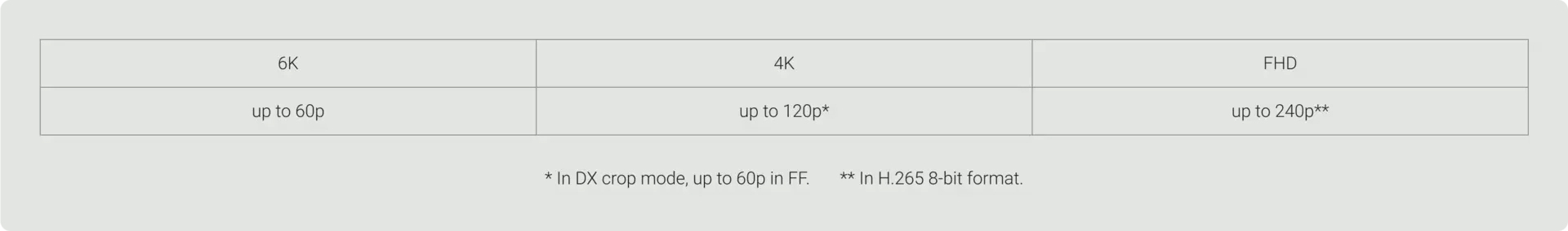 119,88p (980 Mbps), 100p (820 Mbps), 59,94p (490 Mbps), 50p (410 Mbps)