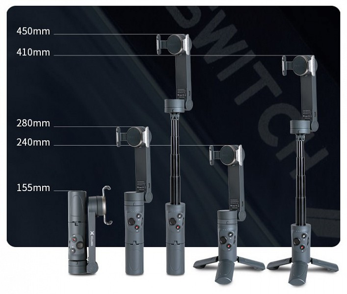 Az Switch X összecsukva telefontartóként is szolgálhat. 155 mm-es összecsukott hosszával még helytakarékosabb, mint egy mobiltelefon, így könnyen hordozható.