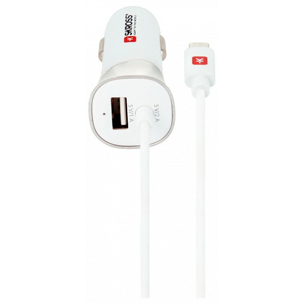SKROSS autós USB töltő, kábellel, micro csatlakozóval, plusz USB csatlakozó. Max output 3A