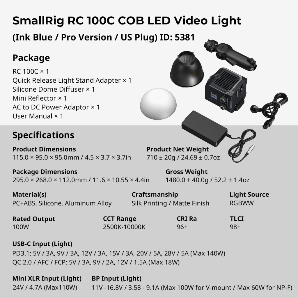 SmallRig RC 100C COB LED Video Light (Pro Version EU) (5380)