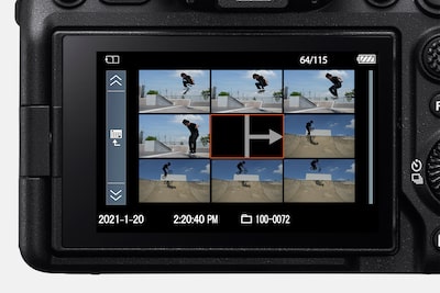 Az Alpha7 IV a képkiválasztás és -szerkesztés terén számos egyedi fejlesztést tartalmaz, amelyek leegyszerűsítik a munkafolyamatot, és lehetővé teszik nagy mennyiségű adat hatékony kezelését.