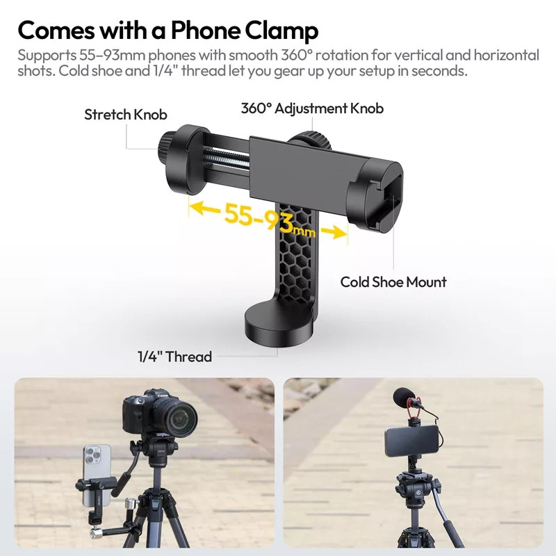 Telefontartó adapter: lehetővé teszi okostelefonok rögzítését, így vlogoláshoz, élő közvetítéshez vagy mobil videózáshoz is használható.